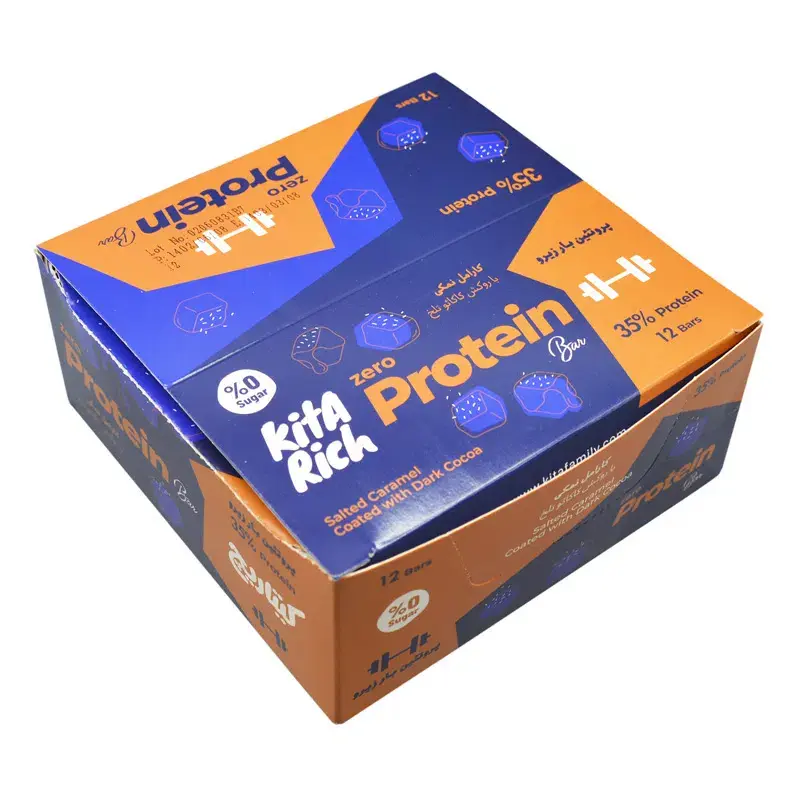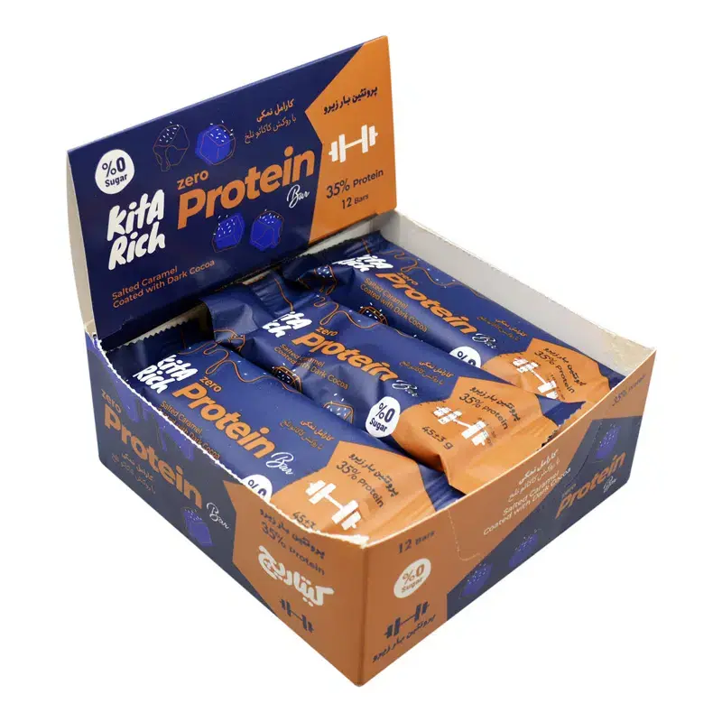 پکیج شکلات پروتئین بار زیرو کیتاریچ کارامل نمکی با روکش کاکائو تلخ ۴۵ گرمی