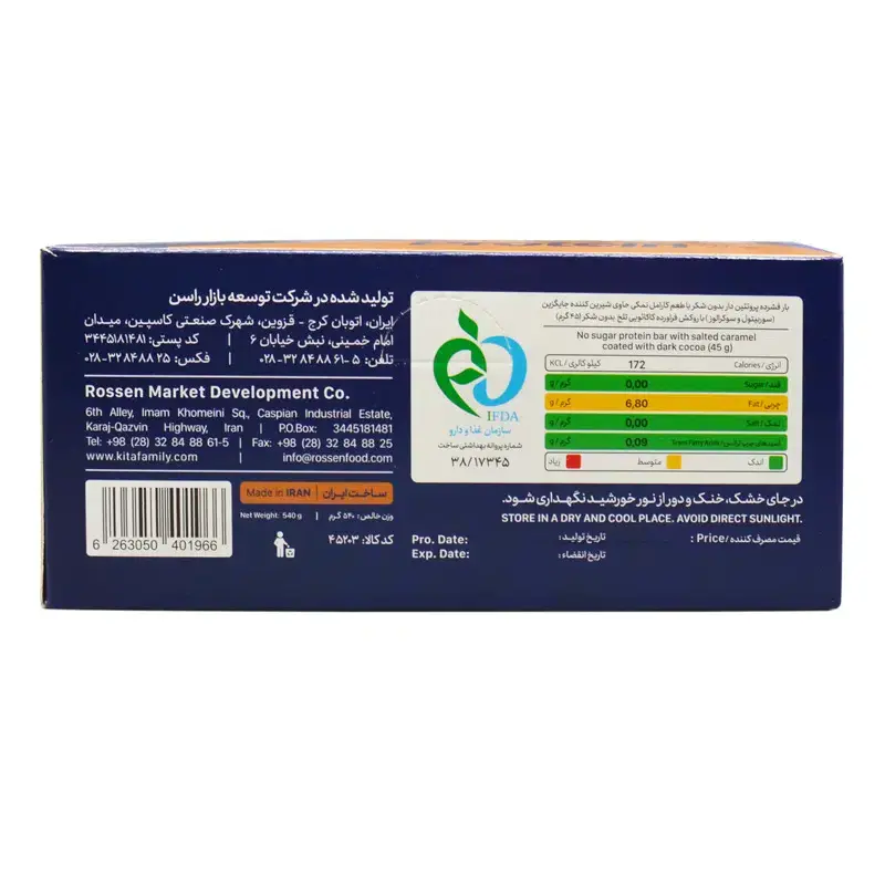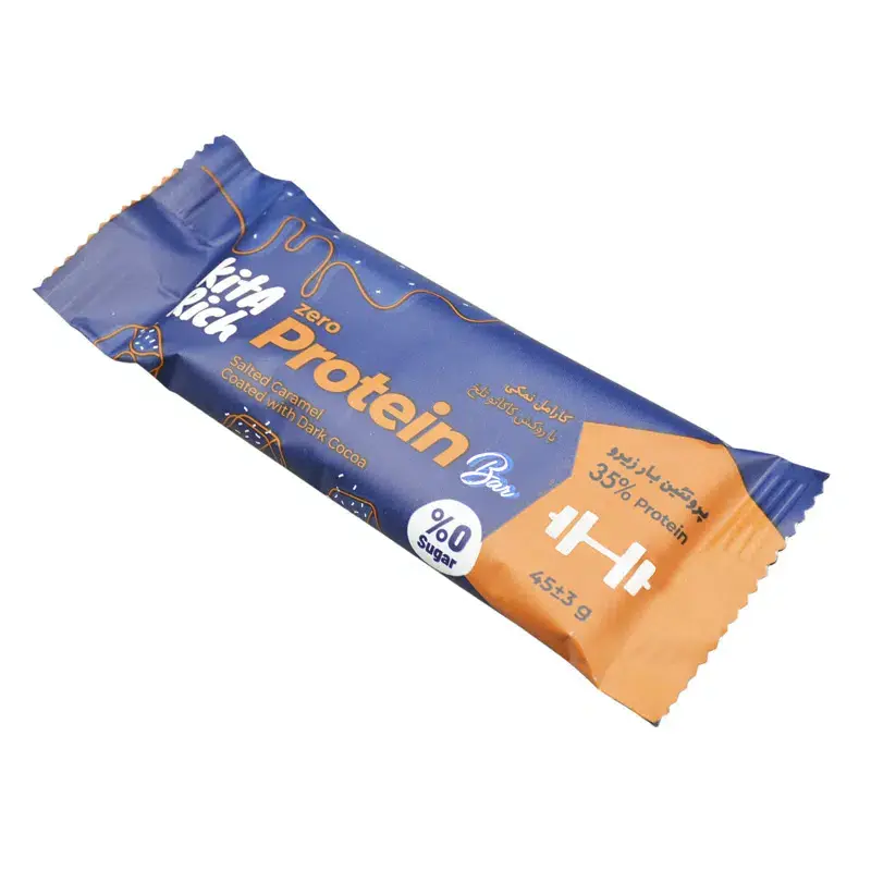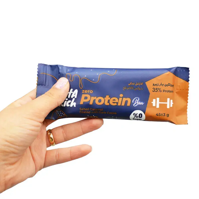 • میان وعده مفید پروتئین بار زیرو کارامل نمکی با روکش کاکائو تلخ